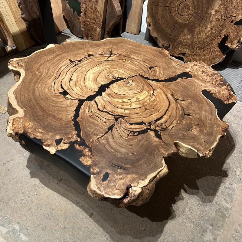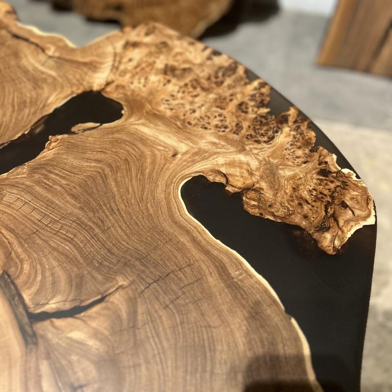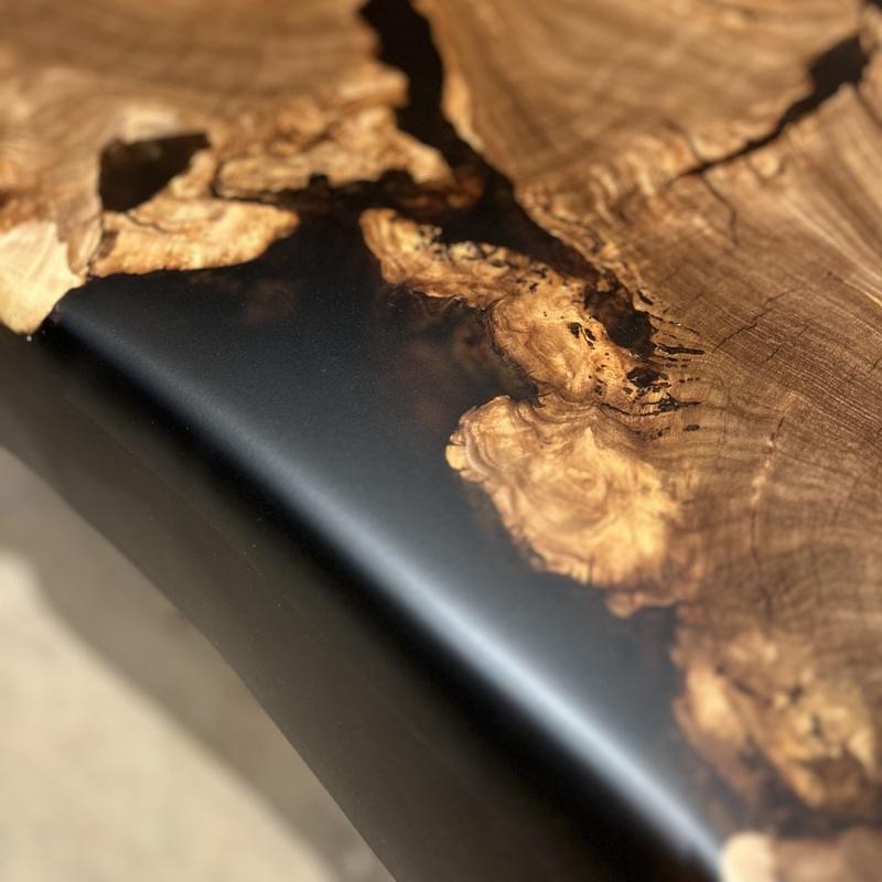 Большой стол из спила с черной смолой (2025)